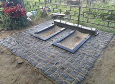 На данном участке клиент пожелал вместо уже существующего оформления места захоронения изготовить два симметричных памятника и покрыть территорию рядом с ними брусчаткой.