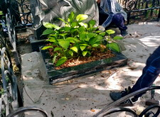 На представленных ниже фотографиях состояние места захоронения на момент прихода клиента. Брусчатка положена, форма цветника и вид оградки изменены. Работа над этим объектом – яркий пример того, как сильно может повлиять на внешний вид участка лишь одно наземное покрытие.